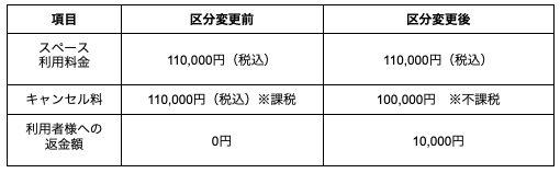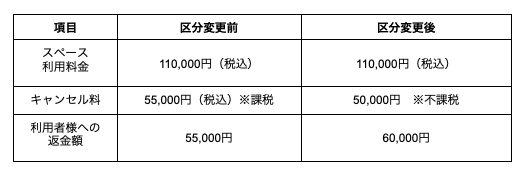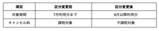 この変更に伴い、従来課税対象であったキャンセル料が不課税対象となっております。