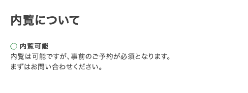また、スペースページの下部には内覧の可否と流れが記載されている場合もありますのであわせてご確認ください。