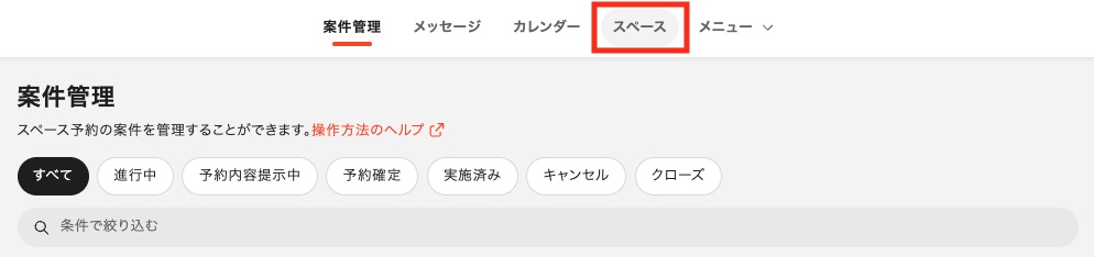 上部のメニューから「スペース」にアクセスします。