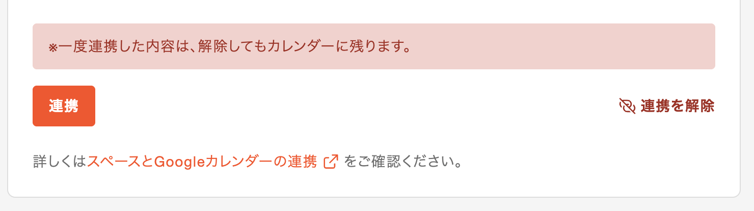 スペースとGoogleカレンダーを連携する際に設定した「連携内容」は変更することができます。