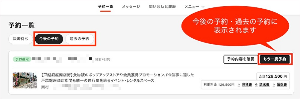 ※今後の予約・過去の予約にのみ表示されます。